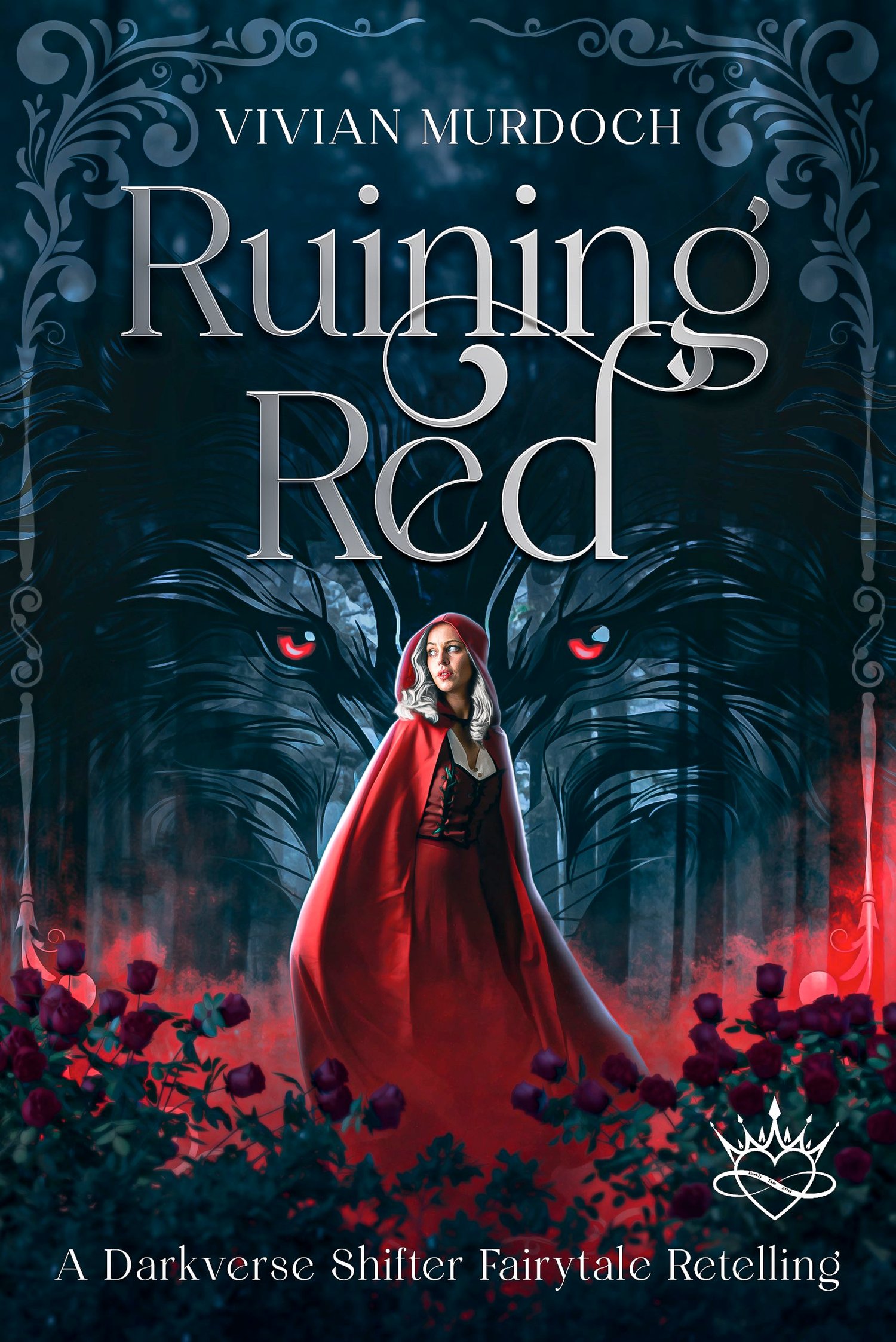 Ruining Red is a dark, Omegaverse-inspired Red Riding Hood retelling with primal obsession, hidden identity, sacrificial rites, fated mates, and vengeance soaked in heat. Read the triggers. And don't run—you'll only make him chase you harder.