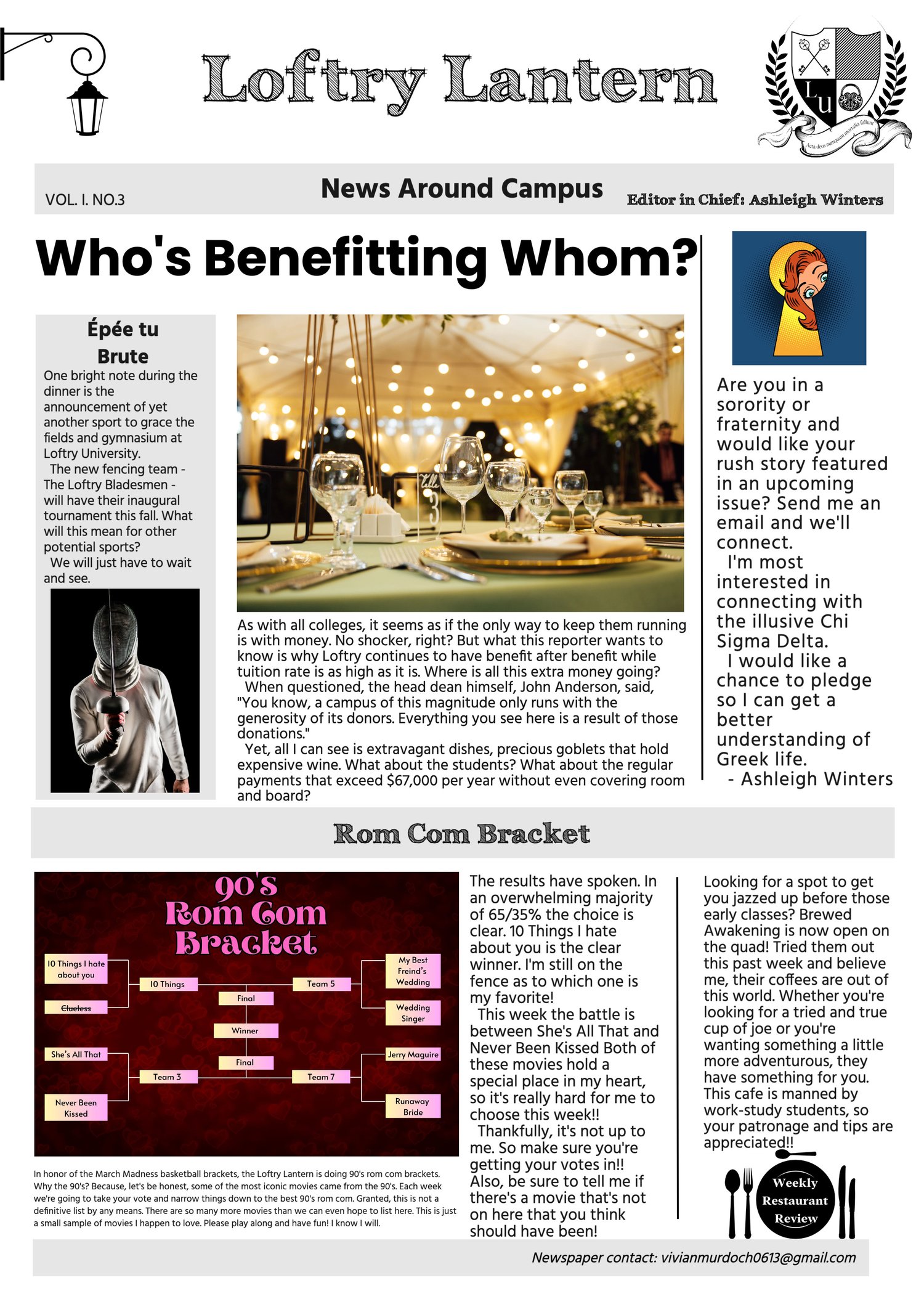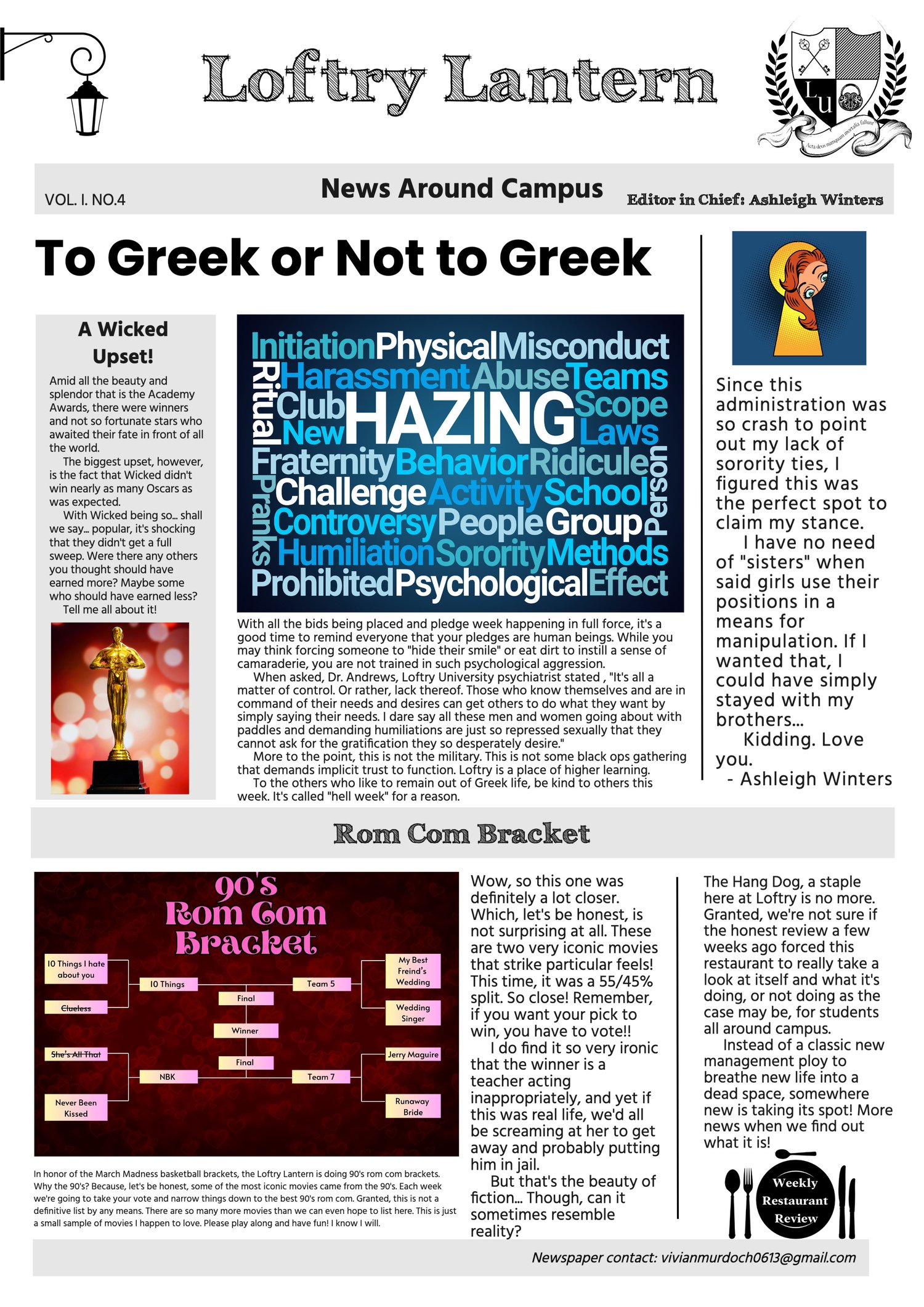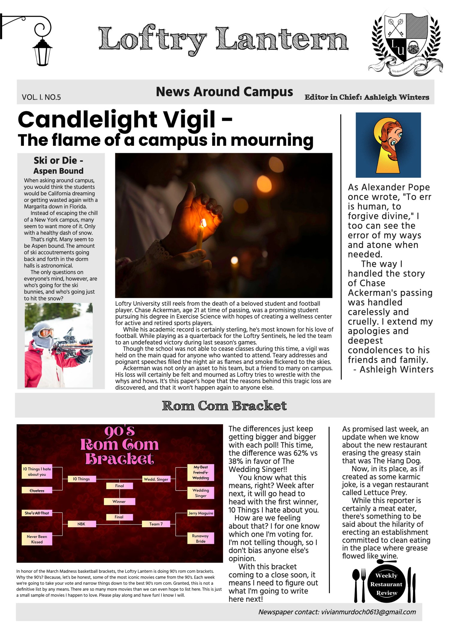Censorship runs rampant at the Loftry Lantern, leading to some interesting articles.
